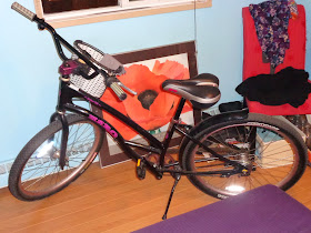 This is Prunella. She’s a Haro sidewalk cruiser, and she belonged to my friend Karen, who died a couple of weeks ago, and whose funeral I will attend this afternoon. Karen, a writer and editor, was 56 and died of a rare, incurable neurological disease. She was one of my favorite people to be around.